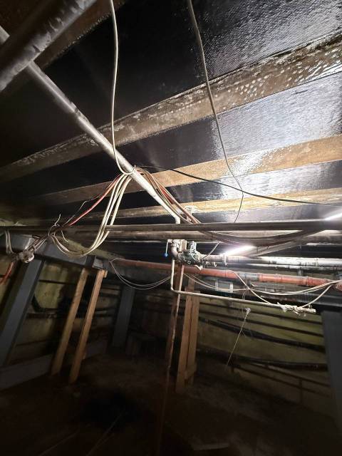 На участках с постоянными протечками выполнены работы по нанесению проникающей гидроизоляции:
